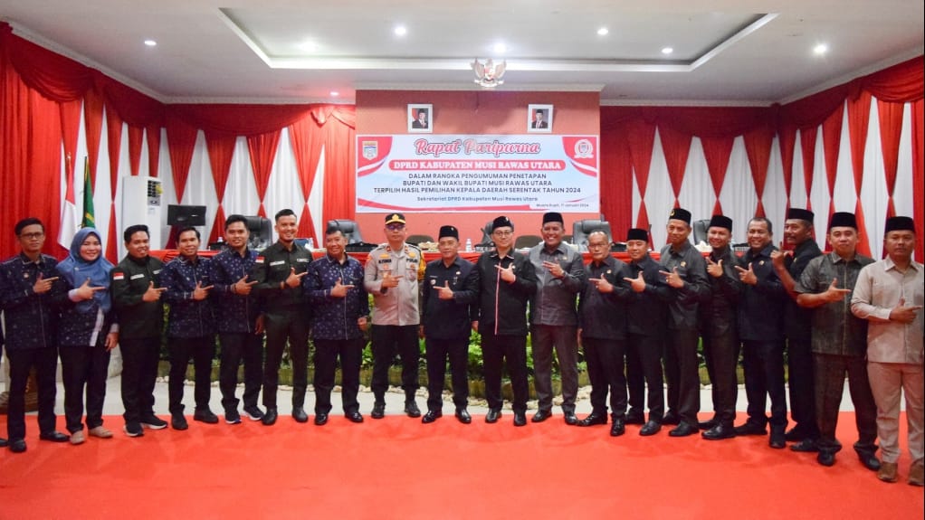 BERDIKARI – Dewan Perwakilan Rakyat Daerah (DPRD) Kabupaten Musi Rawas Utara (Muratara) menggelar rapat paripurna dalam rangka pengumuman penetapan bupati dan wakil bupati terpilih hasil pemilihan serentak tahun 2024, Jumat (17/1/2025).