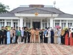 BERDIKARI – Bupati Musi Rawas Utara, Devi Suhartoni melepas keberangkatan jemaah umroh gratis yang dibiayai pemerintah daerah setempat, Senin (16/12/2024). Jemaah umroh