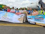BERDIKARI – Pemerintah Kabupaten Musi Rawas Utara (Muratara) turut serta dalam acara penyambutan penerbangan perdana maskapai Super Air Jet di Bandara Silampari,